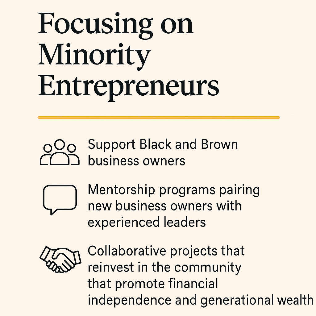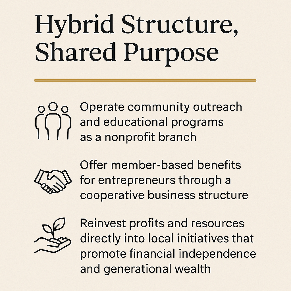 To build and sustain generational wealth in our communities through shared knowledge, mutual support, and collective action